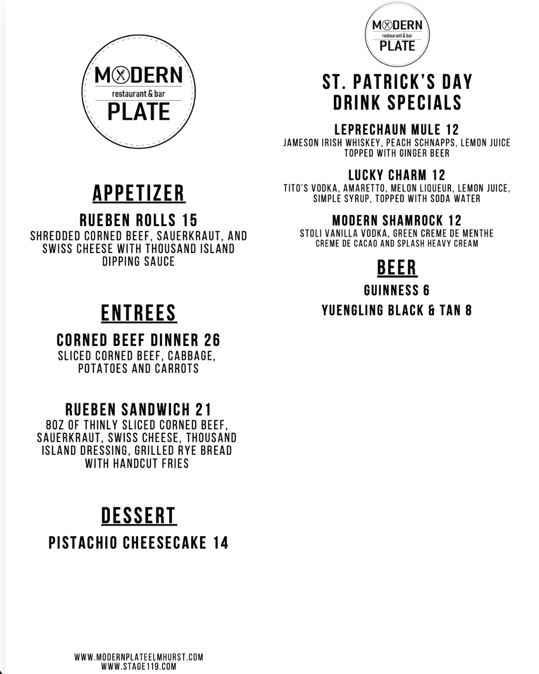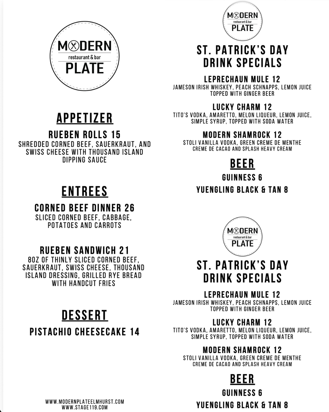 🍀 St. Patrick’s Weekend at Modern Plate 🍀